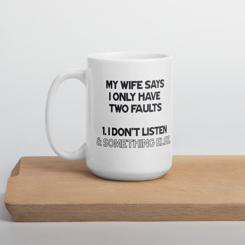 My Wife Says I Only Have Two Faults... - White Glossy Mug